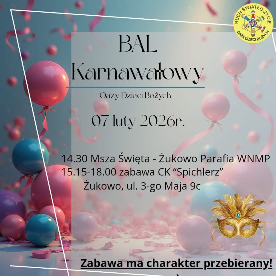 Serdecznie zapraszamy na zabawę karnawałową Oazy Dzieci Bożych!