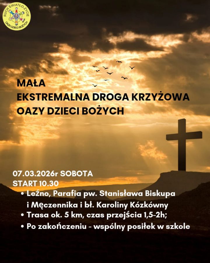 Jak co roku, odbędzie się ona w Leźnie, 7 marca 2026 (sobota), start o godz. 10:30. Rozpoczniemy wspólną modlitwą w kościele parafialnym, a następnie wyruszymy na dwugodzinną trasę leśną o długości około 4,5 km. W drodze będziemy modlić się, śpiewać na chwałę Pana Jezusa i wspólnie nieść Jego krzyż.
